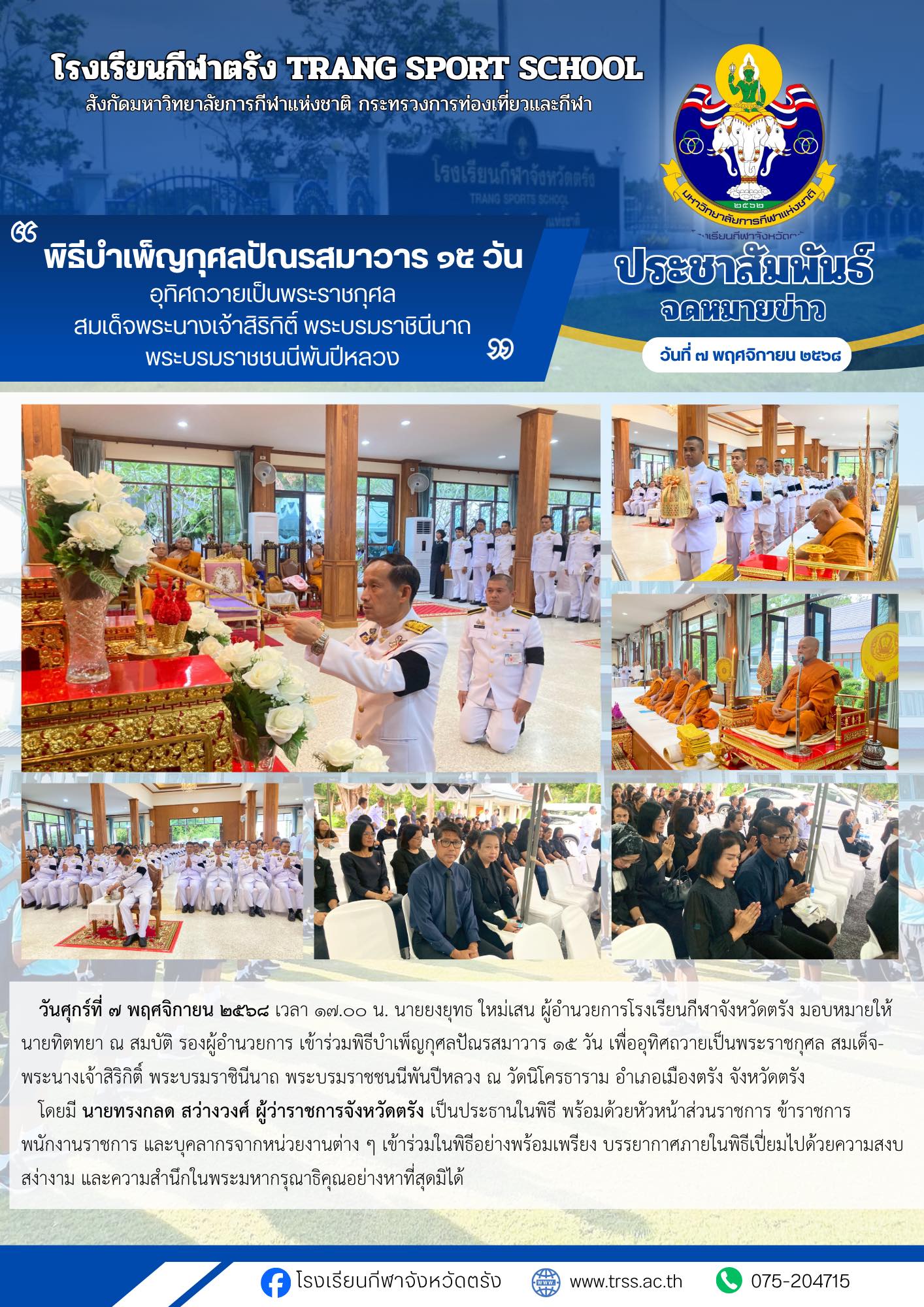 พิธีบำเพ็ญกุศลปัณรสมาวาร (๑๕ วัน) เพื่ออุทิศถวายเป็นพระราชกุศลแด่ สมเด็จพระนางเจ้าสิริกิติ์ พระบรมราชินีนาถ พระบรมราชชนนีพันปีหลวง